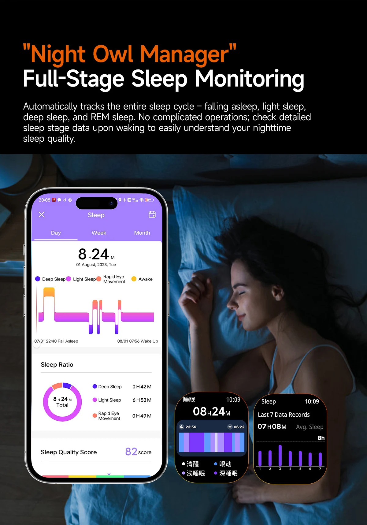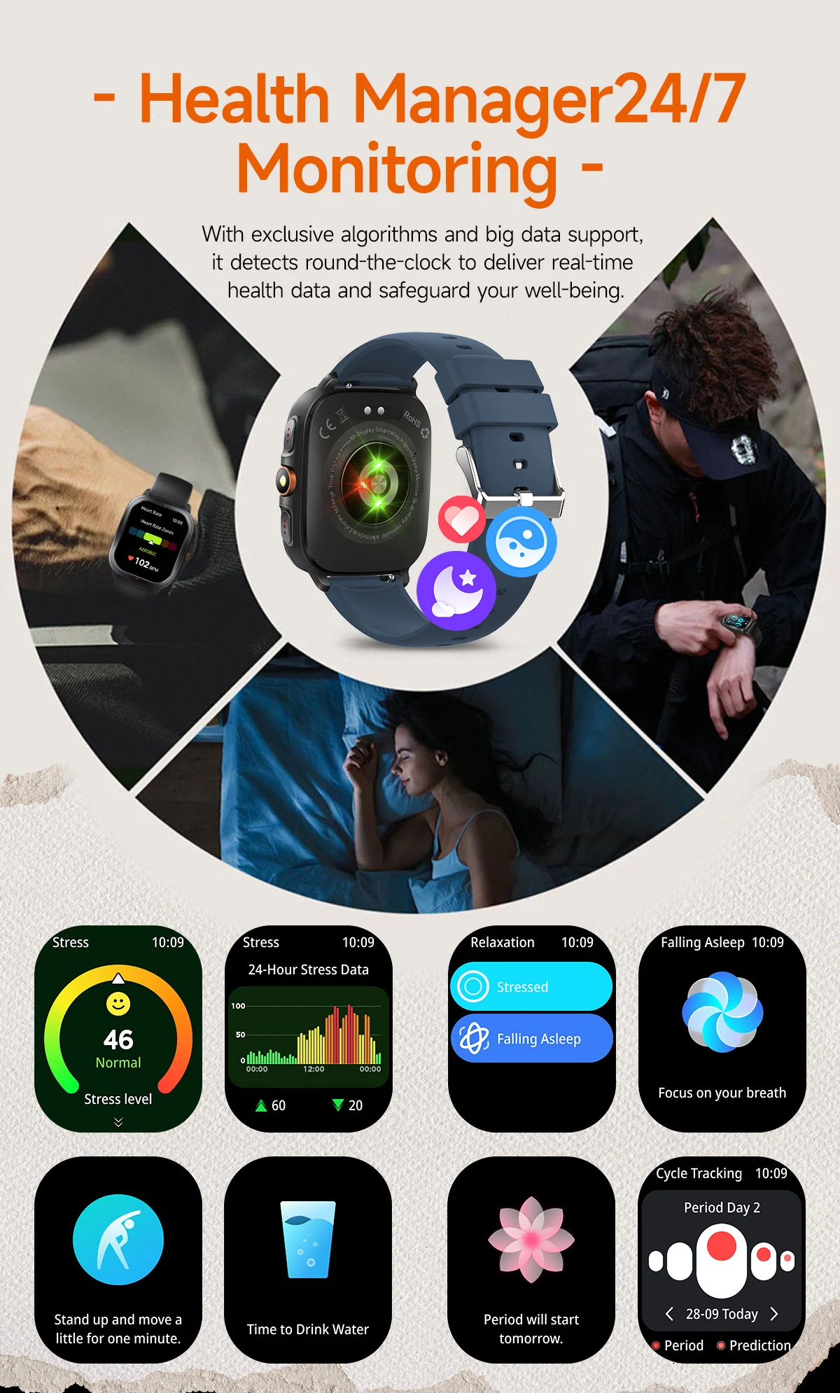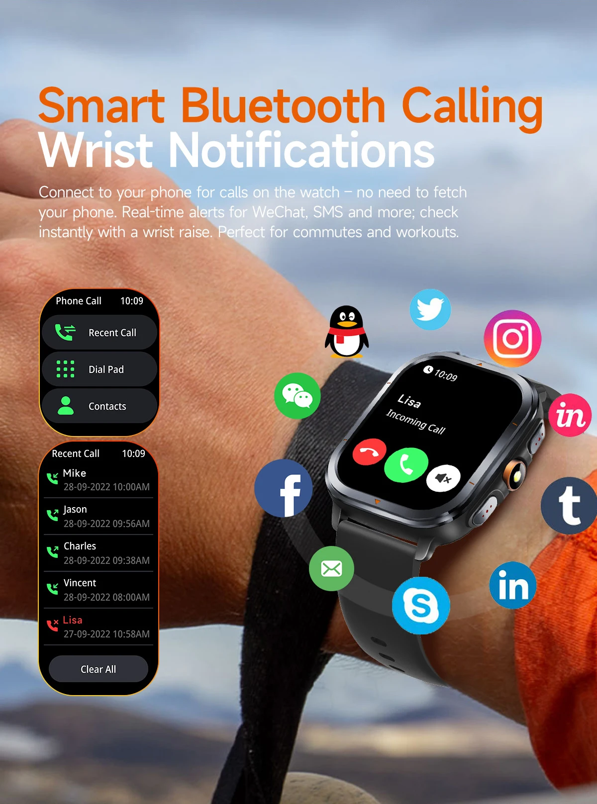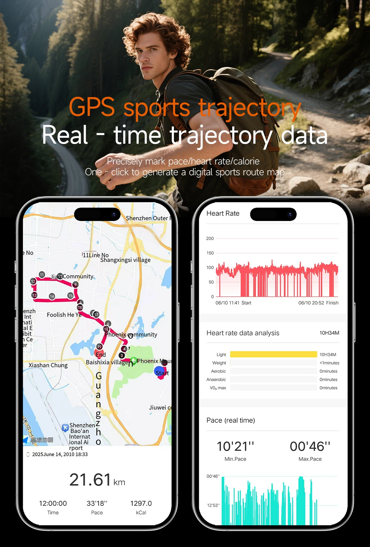 Main features: GPS positioning, altimeter, barometer, compass, AI watch face, AI Q&A, high-powered flashlight (4 modes), Go More algorithm, accurate sleep monitoring, IP68 deep dust and water resistance, 120+ sports modes, heart rate monitoring, stress monitoring, true blood oxygen saturation, blood pressure monitoring, and always-on display clock.