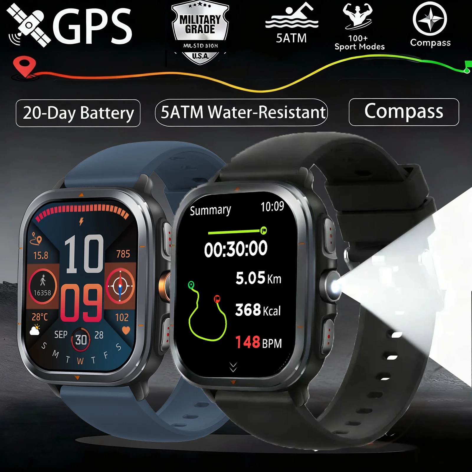 2025 New Military Smart Watches Bulit-in GPS Offline Maps Compass Altimeter Barometric 3ATM Waterproof Sports Smartwatches Men